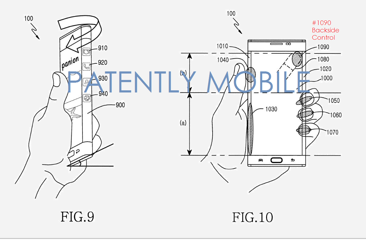 براءة الإختراع التي سجلتها سامسونغ كانت قد تقدمت بها بها السنة الماضية خلال شهر نوفمبر 2014 وهاهي اليوم قد حصلت عليها وتكمن براءة الإختراع الجديدة في جهاز مزود بشاشة تمتد إلى خلف الهاتف و إتاحة التحكم فيه من الخلف.